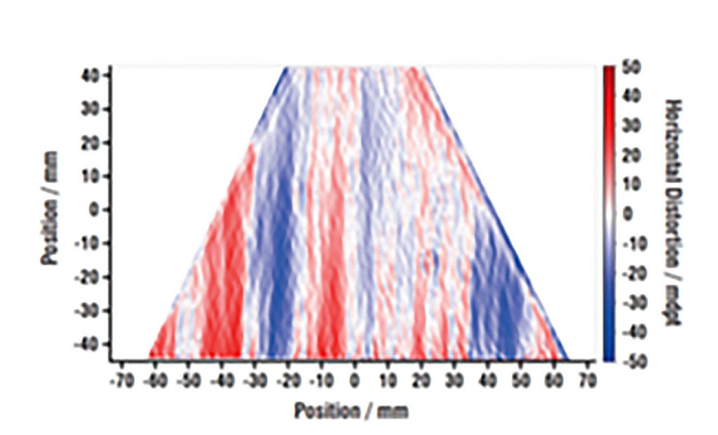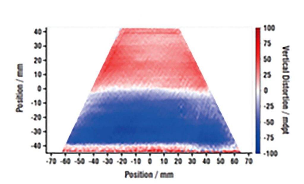 Zusätzlich zur ISO-konformen Bildqualitätsmessung lässt sich mit dem optionalen Power-Modul eine 2D-Verzerrungskarte der Scheibe erstellen.