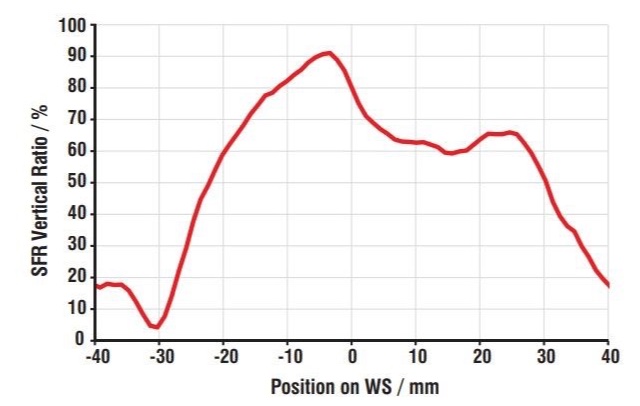 Analyse der SFR eines ADAS-Kamerabereichs an einer Windschutzscheibe durch einen vertikalen Scan