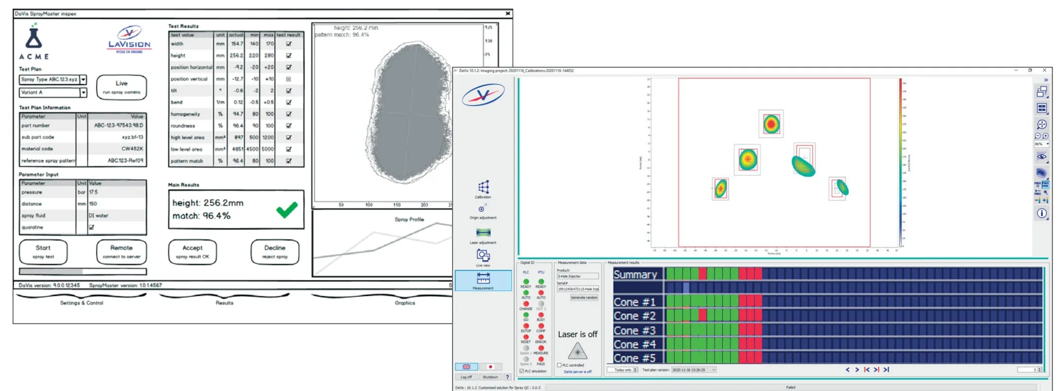 Vollautomatische Erfassung und Berechnung von Sprühbild, Sprühkegel und Partikelverteilung - Benutzerdefinierte Operator- und Administrator-Interfaces: