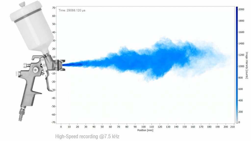 Hochgeschwindigkeitsaufnahmen für eine lückenlose Analyse des Sprühvorgangs - Erfassung kleinster Partikelbewegungen: