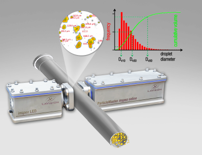 LaVisions ParticleMaster inspex online wurde speziell für die Partikel- und Tröpfchencharakterisierung in industriellen Prozessen entwickelt, z. B. für 24/7 online und inline Produktionsüberwachung. Größenparameter sowie Partikelstatistiken werden an die Produktionsumgebung kontinuierlich oder auf Abfrage kommuniziert. Gängige Kommunikationsprotokolle ermöglichen eine einfache Integration in die Produktionsstraße.