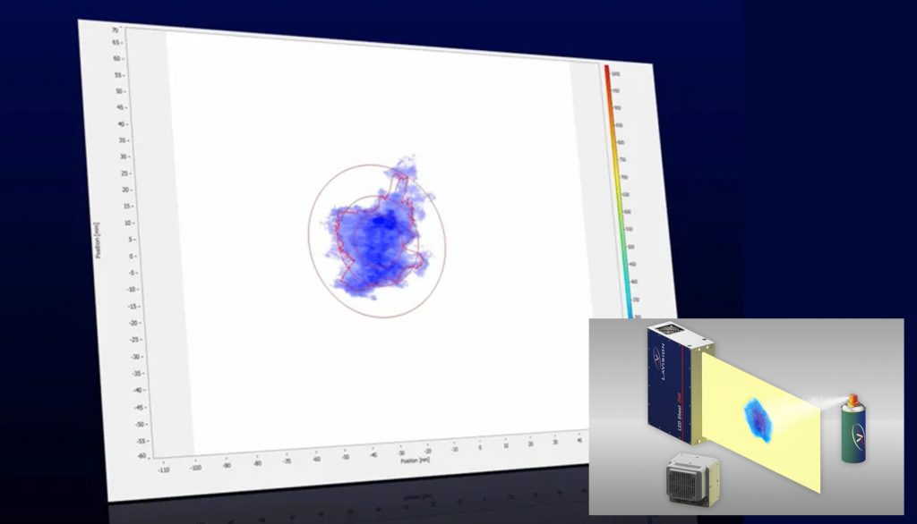 - Automatisierte Bildaufnahme & Analyse: Vollautomatische Erfassung und Berechnung von Sprühbild, Sprühkegel und Partikelverteilung