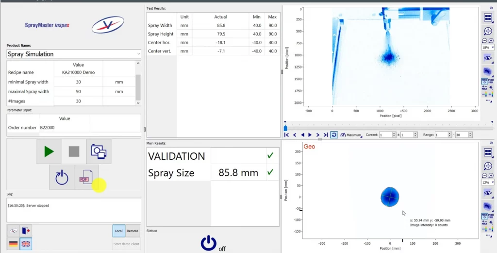 Die LaVision Quality Control Software ist das zentrale Element für eine effiziente, automatisierte und lückenlose Qualitätsprüfung. Sie ermöglicht die nahtlose Datenerfassung, Analyse und Dokumentation aller relevanten Sprühparameter und sorgt für eine konsistente und normgerechte Qualitätssicherung – vom ersten Test bis zur Serienproduktion. Durch die vollständige Integration mit den SprayMaster inspex  und ParticleMaster inspex  Systemen können Prüfabläufe automatisiert, Ergebnisse präzise verglichen und alle relevanten Daten in Echtzeit erfasst werden. Die Software bietet eine benutzerfreundliche Oberfläche, anpassbare Prüfkriterien und eine automatische Berichtserstellung für eine effiziente und transparente Qualitätssicherung.